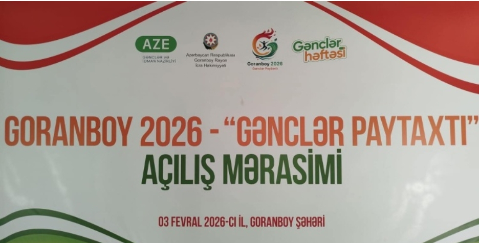 Sahibkartv.az xəbər verir ki, Goranboy rayonunun 2026-cı il üçün "Gənclər Paytaxtı" seçilməsi münasibətilə Goranboy rayon İcra Hakimiyyəti və Gənclər və İdman Nazirliyinin birgə təşkilatçılığı ilə Goranboy şəhəri 1 nömrəli tam orta məktəbində keçirilən açılış mərasimində, rayon İcra Hakimiyyətinin başçısı Məhərrəm Quliyev, Gənclər və İdman Naziri Fərid Qayıbov, Naxçıvan Gənclər və İdman Naziri Səlahiyyətlərini icra edən Mirməcid Seyidov, Sumqayıt şəhər İcra Hakimiyyəti başısının birinci müavini Teymur Səmədov, Milli Məclisin deputatı Müşfiq Cəfərov, YAP Gənclər Birliyinin nümayəndəsi Emil Aslanlı, rayonumuzun digər rəhbər şəxsləri, respublikamızın və rayonumuzun çoxsaylı gəncləri iştirak etdilər. Tədbirdə öncə, Ümummilli Liderimiz Heydər Əliyevin və ölkəmizin suverenliyi uğrunda canlarından keçmiş şəhidlərimizin əziz xatirəsi bir dəqiqəlik sükutla yad edildi, sonra Dövlət Himni səsləndirildi. Tədbirdə çıxış edən Goranboy rayon İcra Hakimiyyətinin başçısı Məhərrəm Quliyev, Gənclər və İdman naziri Fərid Qayıbov, 2025-ci ilin “Gənclər Paytaxtı” olmuş Sumqayıt şəhər İcra Hakimiyyəti başçısının birinci müavini Teymur Səmədov və Milli Məclisin deputatı Müşfiq Cəfərov ölkəmizdə uğurla həyata keçirilən məqsədyönlü dövlət gənclər siyasətindən danışdılar. Nazir Fərid Qayıbov “Gənclər Paytaxtı”nın rəmzi açarını Sumqayıt şəhər İcra Hakimiyyəti başçısının birinci müavini Teymur Səmədovdan təhvil alaraq, Goranboy rayon İcra Hakimiyyətinin başçısı Məhərrəm Quliyevə təqdim etdi. Sonra istedadlı və yaradıcı gənclər mükafatlandırıldı. Azərbaycan Gəncləri Gününə həsr olunmuş videoçarx nümayiş olunduqdan sonra Goranboyun “Gənclər Paytaxtı” loqosu və maskotu ictimaiyyətə təqdim edildi. Daha sonra, Heydər Əliyev parkında təşkil olunan GəncFestdə gənclər düşərgələrinə baxış keçirildi, gənclər hərbi-vətənpərvərlik, yaradıcılıq, stolüstü oyunlar, intellektual yarışlar, interaktiv təlimlər və əyləncə zonalarında müxtəlif fəaliyyətlərdə iştirak etdilər.