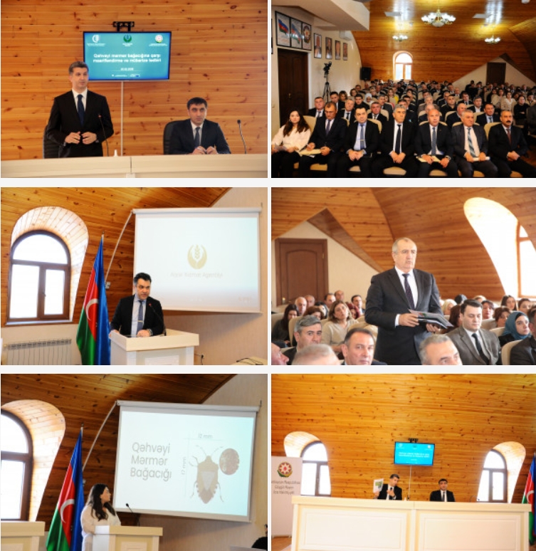 Aqrar Xidmətlər Agentliyinin sədri Sərdar Hacıyev çıxış edərək tədbirin əhəmiyyətindən danışıb, görülən işlər və qarşıdakı vəzifələrlə bağlı ətraflı məlumat verib. O bildirib ki, qəhvəyi mərmər bağacığının yayıldığı bölgələrdə mübarizə tədbirləri gücləndirilib, qışlama yerlərinin aşkarlanması istiqamətində monitorinqlərin sayı artırılıb. Agentliyin nümayəndələri yerli əhali və sahibkarlarla mütəmadi görüşlər keçirir, onlara zərərvericinin yayılma yolları, təsərrüfatlara vurduğu zərərlər və effektiv mübarizə üsulları barədə ətraflı məlumatlar verir, həmçinin maarifləndirici bukletlər, videoçarxlar və bannerlər hazırlayaraq online media və sosial şəbəkələrdə paylaşımını təmin edir.