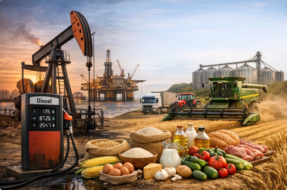 Sahibkartv.az xəbər verir ki, qlobal savaş dövründə neft və ərzaq qiymətləri arasında güclü iqtisadi əlaqə yaranır. Enerji qiymətlərinin artması qida məhsullarının istehsal və daşınma xərclərinə birbaşa təsir edir.