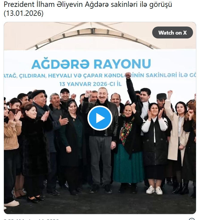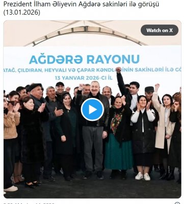 Prezident İlham Əliyev Ağdərəyə səfəri çərçivəsində rayon sakinləri ilə görüşündən paylaşım edib.